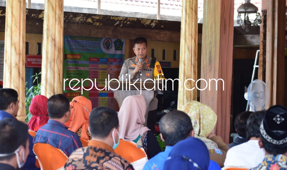 Sidoarjo (republikjatim.com) - Pelaksanaan Pemilihan Kepala Desa (Pilkades) serentak di Sidoarjo dijamin berlangsung aman dan kondusif. Jaminan itu disampaikan Kapolresta Sidoarjo Kombes Pol Kusumo Wahyu Bintoro saat acara Cangkrukan Kamtibmas Pilkades di Desa Kemuning, Kecamatan Tarik, Sidoarjo, Selasa (31/05/2022) siang.