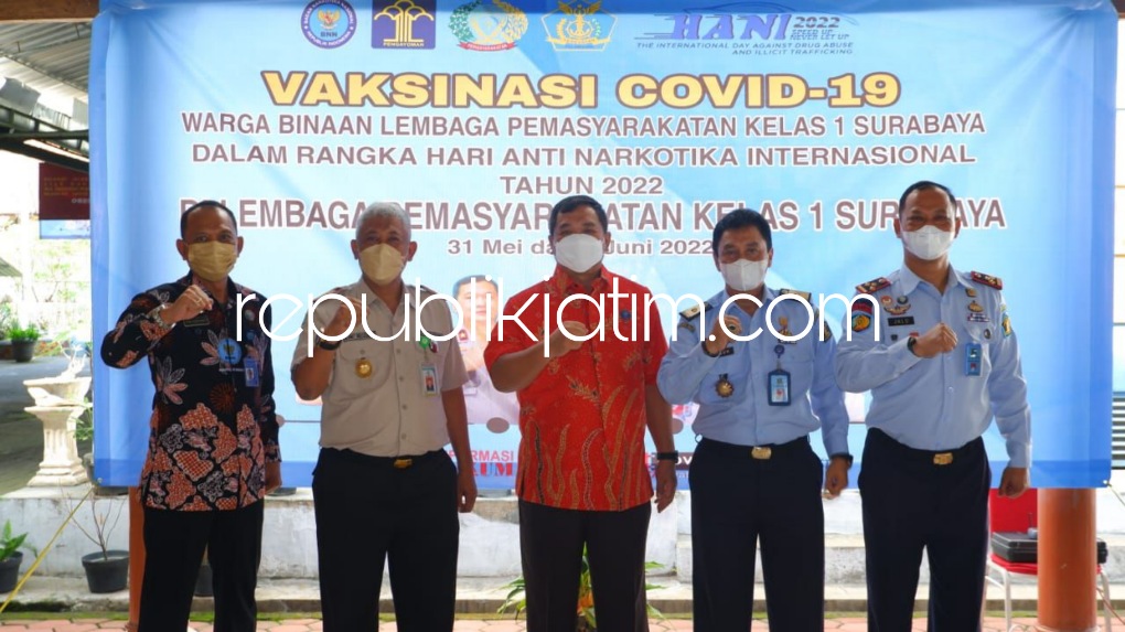 Teguh menyebut kegiatan berkolaborasi dengan BNNP Jatim dan KKP Surabaya itu dalam rangka rangkaian peringatan Hari Anti Narkoba Internasional (HANI). Kerja sama ini untuk menjaga kesehatan dan menciptakan herd immunity kepada 1.253 narapidana di Lapas Surabaya.