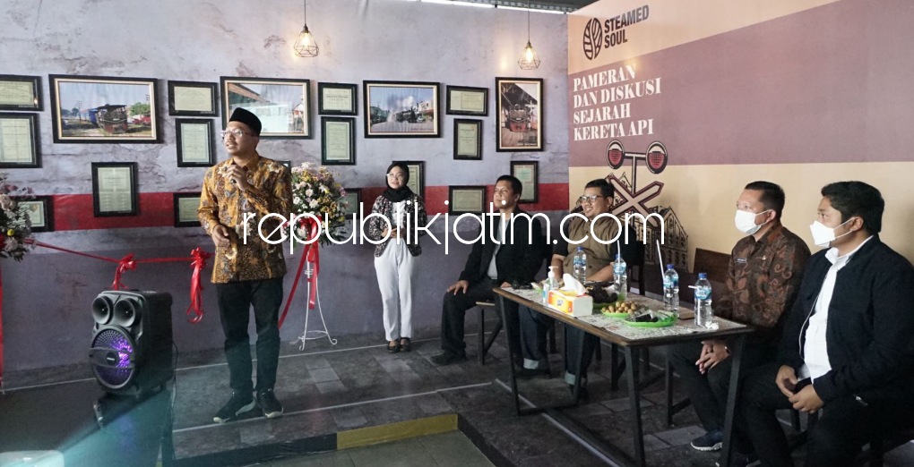 Sidoarjo (republikjatim.com) - Bupati Sidoarjo, Ahmad Muhdlor Ali (Gus Muhdlor) membuka Pameran Kereta Api (KA) yang digelar di Steamed Soul, Sidoklumpuk, Kecamatan Sidoarjo, Kamis (02/06/2022). Pembukaan acara itu diisi dengan diskusi Kereta Api Sidoarjo yang dihadiri anggota Komisi D DPRD Sidoarjo Zahlul Yussar serta pegiat acara Agung Widyanjaya.