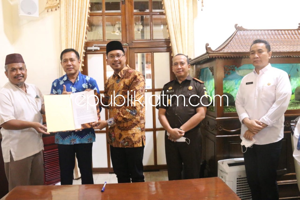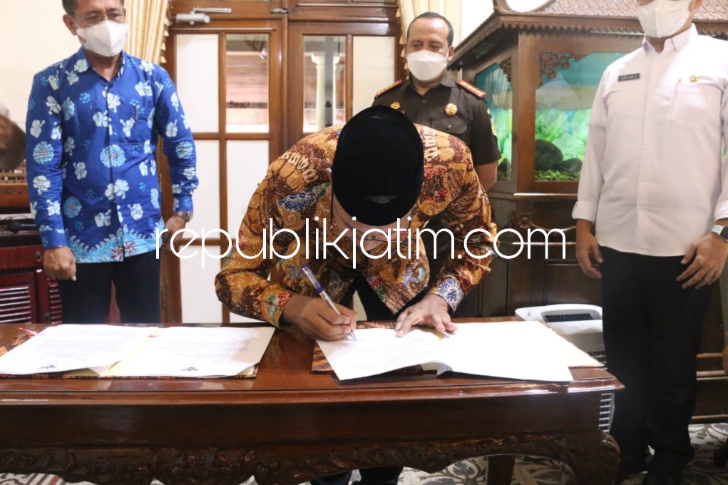 Sidoarjo (republikjatim.com) - Bupati Sidoarjo, Ahmad Muhdlor Ali dan warga korban Lumpur Lapindo menandatangani Perjanjian Tukar Menukar Barang Milik Daerah (BMD) Tanah Eks TKD Kelurahan Juwet Kenongo, Kecamatan Porong, Sidoarjo di Pendopo Delta Wibawa, Jumat (03/06/2022). Tukar guling itu, untuk memberikan kepastian hukum lahan yang dimanfaatkan para korban luapan lumpur Lapindo di Sidoarjo.