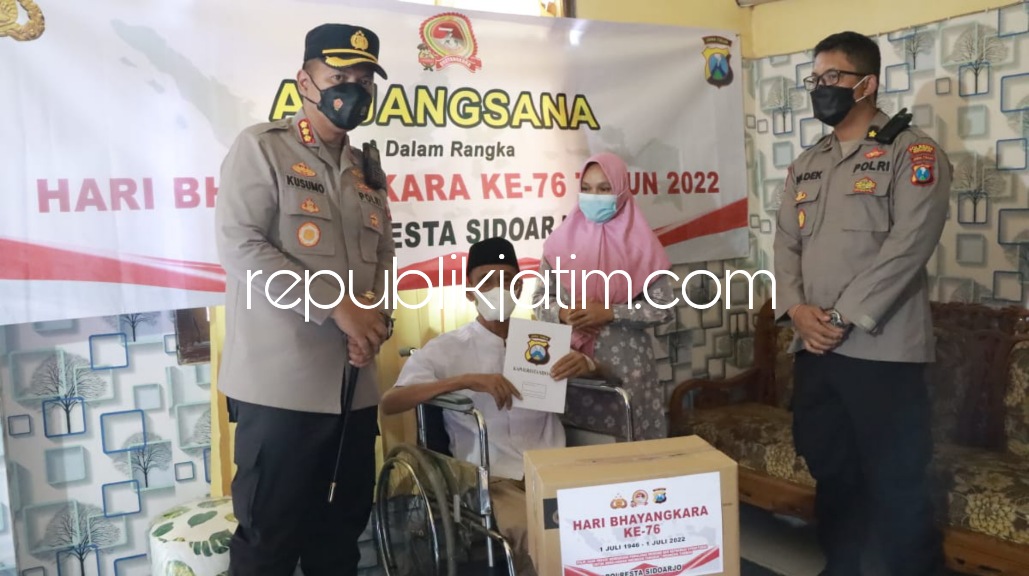 Sidoarjo (republikjatim.com) - Menjalang Hari Bhayangkara ke 76, Kapolresta Sidoarjo Kombes Pol Kusumo Wahyu Bintoro beserta Pejabat Utama (PJU) dan Bhayangkari Polresta Sidoarjo menggelar tradisi anjangsana ke anggota maupun purnawirawan Polri. Anjangsana ini dipimpin langsung Kapolresta Sidoarjo Kombes Pol Kusumo Wahyu Bintoro Selasa (07/06/2022).