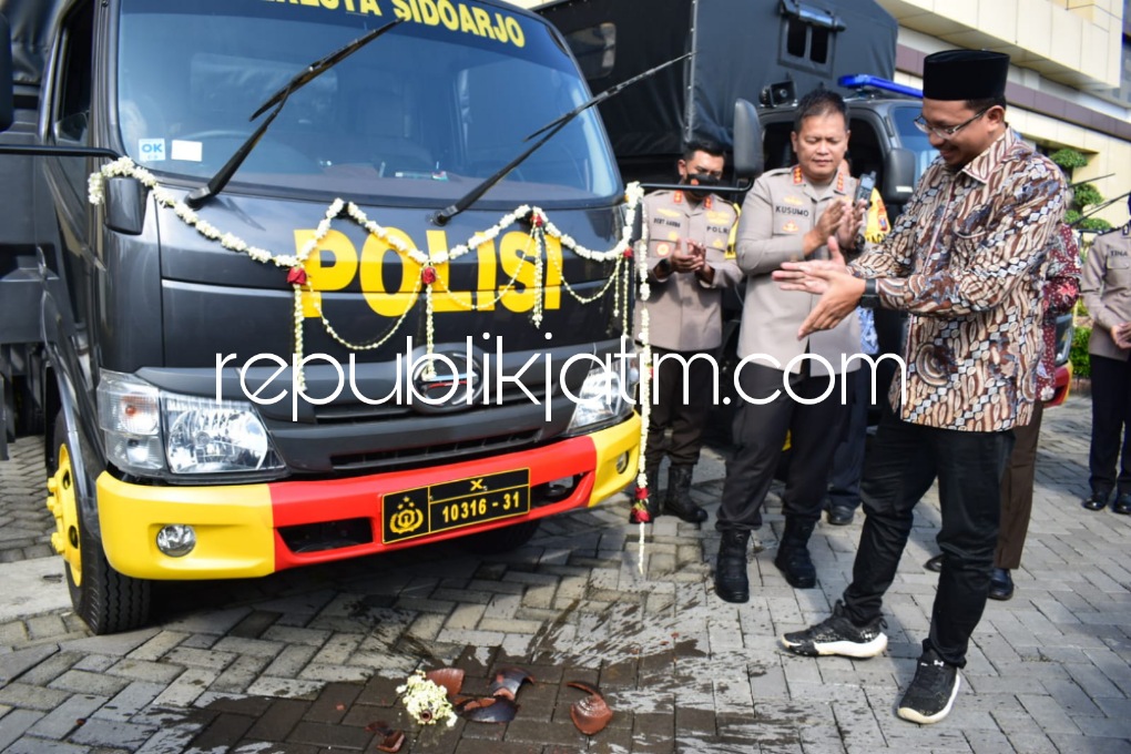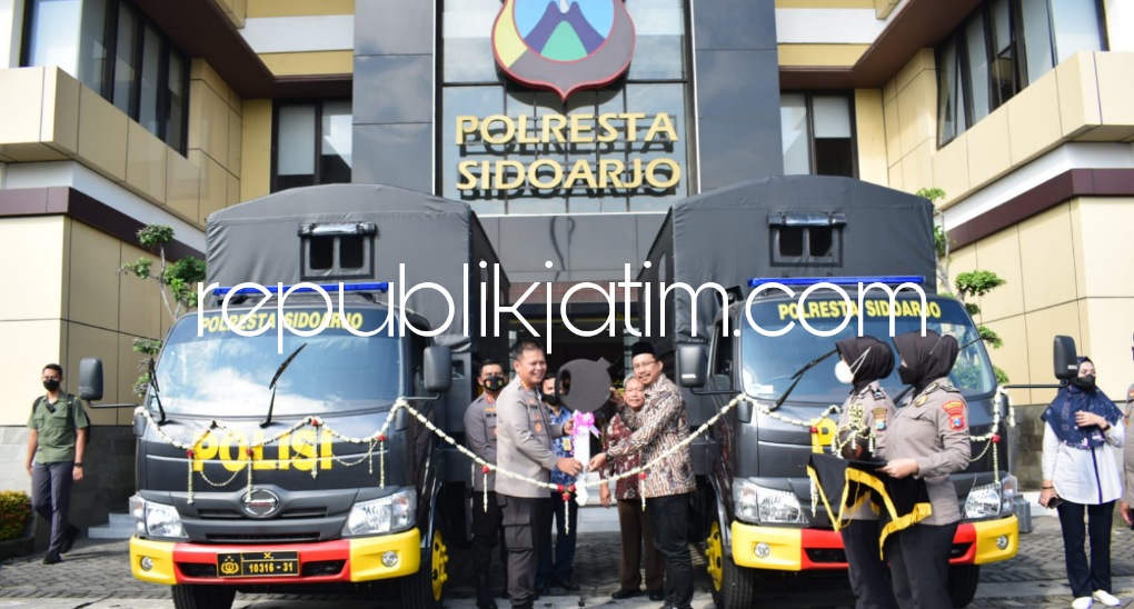 Sidoarjo (republikjatim.com) - Polresta Sidoarjo menerima dua truk operasional dari dana hibah Pemerintah Kabupaten (Pemkab) Sidoarjo. Pemberian dua kendaraan operasional ini sebagai apresiasi kesiapan pengamanan Pilkades Serentak di 84 desa pada 19 Juni 2022 mendatang.