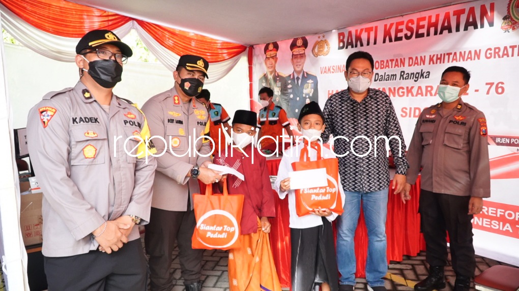 Hal ini seperti dilakukan Polresta Sidoarjo, bakti kesehatan dalam rangka Hari Bhayangkara ke 76 terselenggara di kawasan Sidoarjo Rangkah Industrial Estate (SiRIE) JL Raya Lingkar Timur, Sidoarjo, Jumat (17/06/2022).
