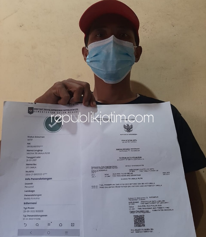 Menurut Eko dirinya mengurus akta kelahiran anak kembarnya Januari Tahun 2022 lalu di balai desa dan baru diambil pada awal April 2022 lalu. Karena itu, dirinya melaporkan pemenang Pilkades (Sutikno) yang menggunakan barcode akta kelahiran anaknya ke Polresta Sidoarjo.