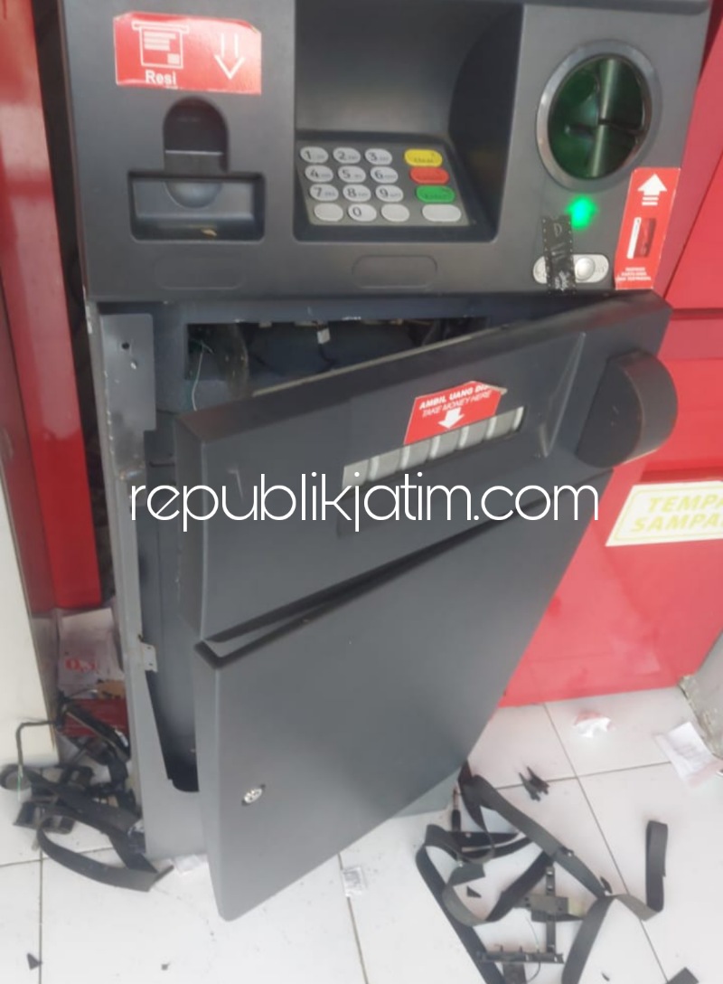 Sidoarjo (republikjatim.com) - Sekawanan pencuri nekat menjalankan aksinya dengan merusak sebuah mesin Anjungan Tunai Mandiri (ATM) Bank Jatim di depan Kantor Dinas Penanaman Modal dan Pelayanan Terpadu Satu Pintu (DPMPTSP) Pemkab Sidoarjo di JL Raya Pahlawan Kecamatan/Kabupaten Sidoarjo, Senin (18/07/2022). Kendati berhasil merusak mesin ATM, akan tetapi kawanan pencuri gagal membobol brankas ATM yang berisi uang tunai itu.