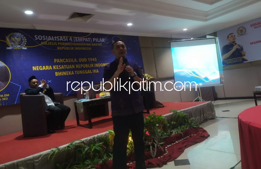 Hal itu disampaikan dalam acara Sosialisasi 4 Pilar MPR RI yakni Pancasila, UUD 1945, NKRI dan Bhinneka Tunggal Ika di Sun City Hotel Sidoarjo, Kamis (21/07/2022). Dalam acara ini yang menjadi narasumber utama adalah anggota Fraksi Partai Nasdem, Willy Aditya dari Dapil Madura, Jawa Timur.