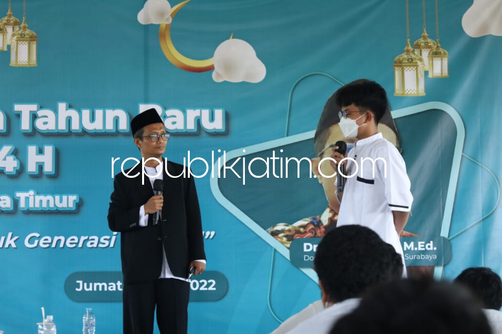 Sidoarjo (republikjatim.com) - SMA Al Muslim memiliki cara tersendiri untuk menyambut Tahun Baru Islam 1444 Hijriyah. Dalam menyambut tahun baru bagi umat Islam itu, SMA Al Muslim yang ada di JL Raya Wadungasri, Kecamatan Waru, Sidoarjo ini dengan menghadirkan narasumber Dosen Fakultas Adab dan Humaniora UINSA Surabaya, Dr Nasaruddin M Ed yang juga alumni Khurtum University Sudan.