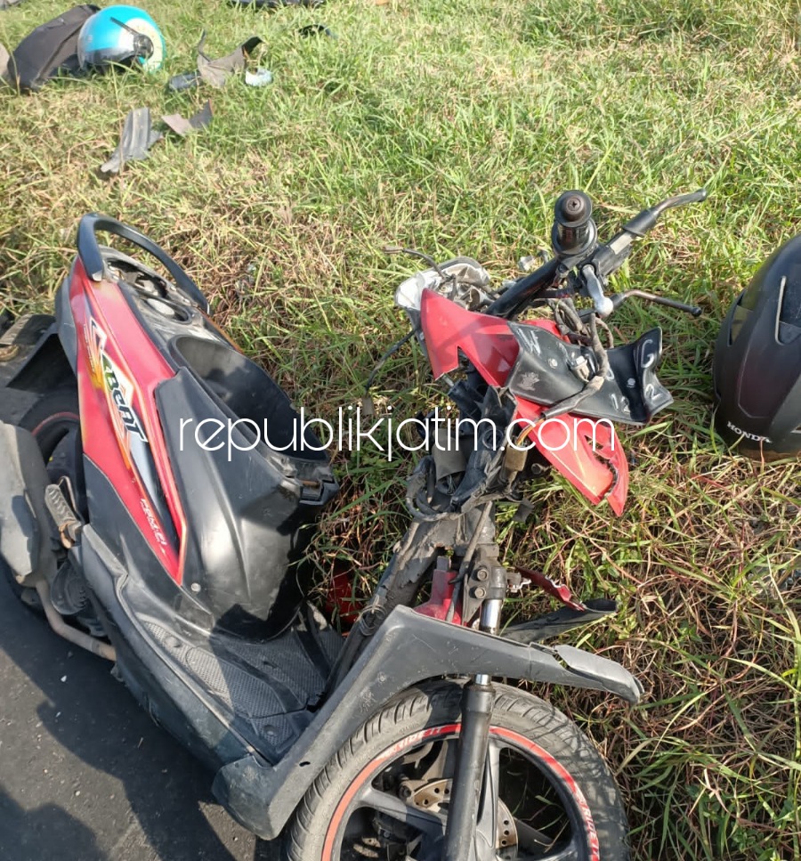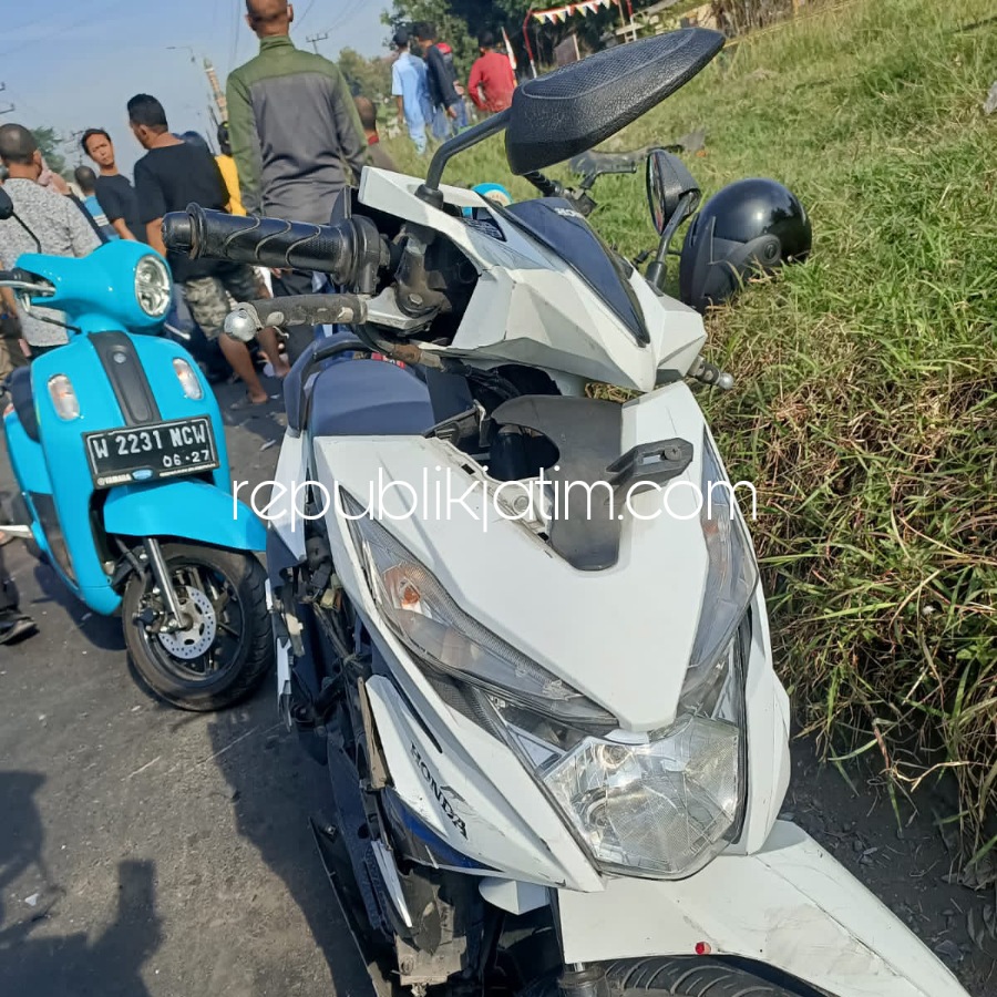Sidoarjo (republikjatim.com) - Kecelakaan terjadi di JL Raya Sukodono - Gedangan, Desa Keboansikep, Kecamatan Gedangan, Sidoarjo, Senin (01/08/2022). Diduga dalam kecelakaan adu moncong antara dua motor Honda Beat dan mobil Daihatsu Ayla itu, disebabkan kurang hati-hatinya pengendara motor.