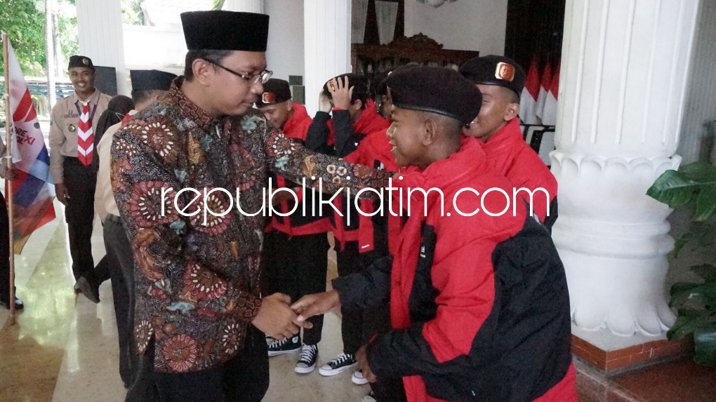 Sidoarjo (republikjatim.com) - Sebanyak 16 anggota Pramuka Penggalang terpilih Kwartir Cabang (Kwarcab) Gerakan Pramuka Kabupaten Sidoarjo diberangkatkan Bupati Sidoarjo Ahmad Muhdlor Ali untuk mengikuti Jambore Nasional Gerakan Pramuka ke XI di Bumi Perkemahan Pramuka Cibubur, Jakarta di Pendopo Delta Wibawa, Rabu (10/08/2022).