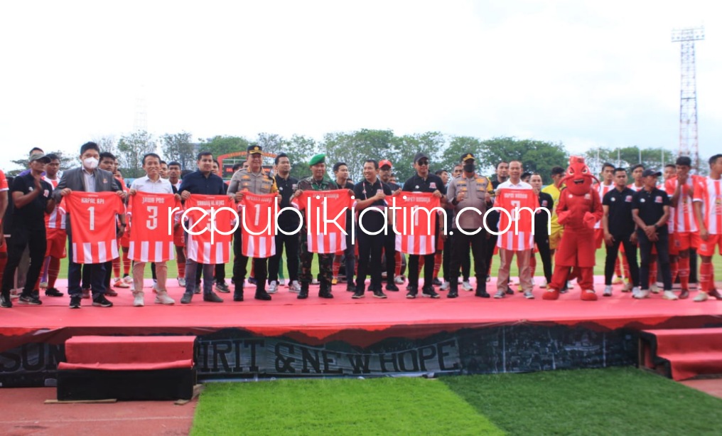 Sidoarjo (republikjatim.com) - Deltras FC Sidoarjo siap berlaga habis-habisan dalam ajang kompetisi Divisi Liga 2 yang akan berlangsung akhir Agustus mendatang. Tim berjuluk The Lobster ini secara resmi melaunching Jersey dan Skuad Tim yang berlaga di liga 2 di Stadion Gelora Delta Sidoarjo, Minggu (14/08/2022) sore.