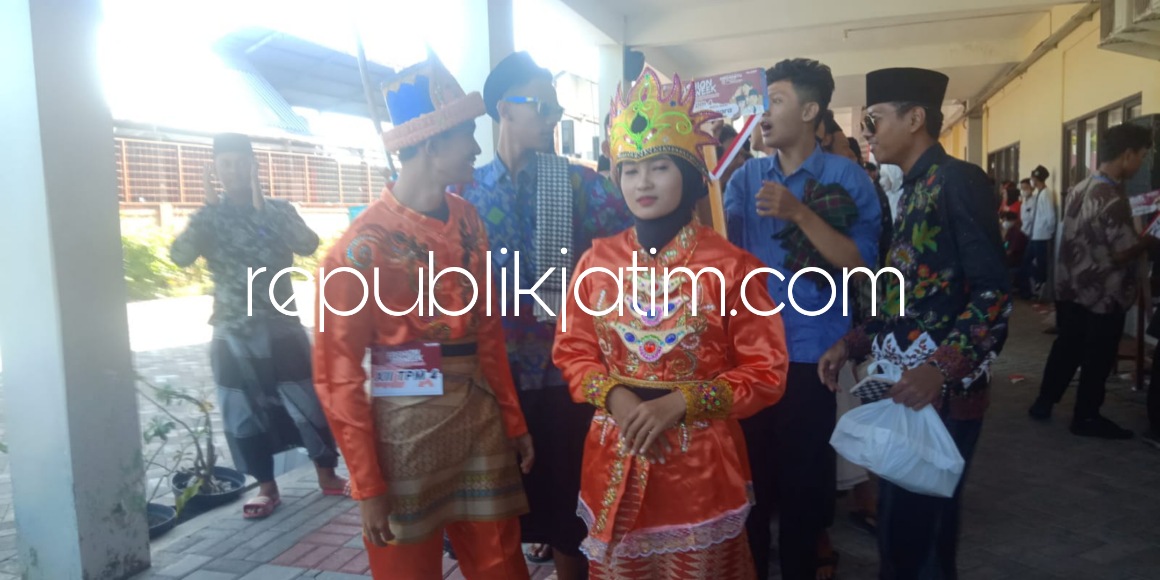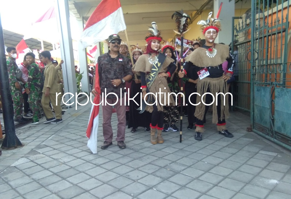 Sidoarjo (republikjatim.com) - Ribuan siswa dan siswi SMK YPM 8 Sidoarjo memeriahkan Hari Ulang Tahun (HUT) }Kemerdekaan RI ke 77, Jumat (19/08/2022). Mereka meramaikan Hari Kemerdekaan itu dengan menggelar fashion show mengenakan busana adat dari 34 propinsi di Indonesia.