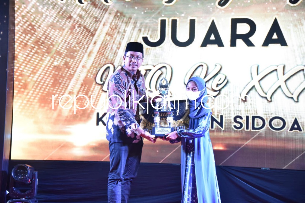 Sidoarjo (republikjatim.com) - Bupati Sidoarjo, Ahmad Muhdlor Ali memberi hadiah kejutan bagi dua orang yang menjadi juara 1 lomba MTQ ke XXX Kabupaten Sidoarjo. Hadiah ini berupa berangkat umroh. Hadiah itu benar-benar menjadi kejutan.