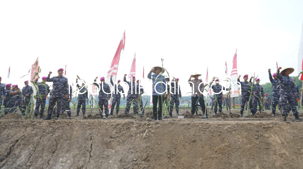 Bertema Melalui Penanaman Sorgum Nasional TNI Angkatan Laut Bersama Rakyat Siap Membangun Kejayaan Maritim Untuk Indonesia Pulih Lebih Cepat, Bangkit Lebih Kuat acara ditempatkan di Lahan Minatani Kesatrian Marinir Moekijat Mako Pasmar 2 Gedangan, Sidoarjo.