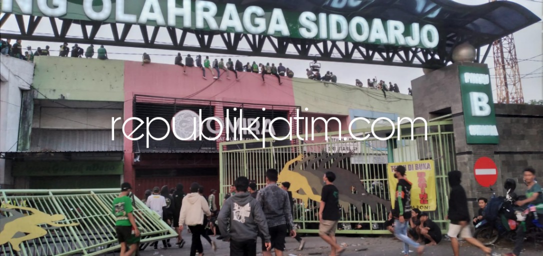 Selain itu, ratusan suporter berjuluk bajul ijo yang turun ke lapangan itu terlihat menjebol pagar pembatas yang ada di tribun sisi utara dan selatan di Gelora Delta Sidoarjo. Termasuk merusak fasilitas stadion seperti papan iklan atau sponsor yang ada di pinggir lapangan dan merusak bangku pemain.