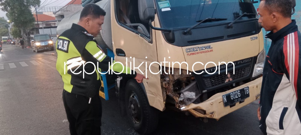 Sidoarjo (republikjatim.com) - Kecelakaan maut antara truk tangki air dan sepeda motor terjadi tepat di perempatan JL KH Mukmin, Kutuk, Kelurahan Sidokare, Kecamatan Sidoarjo Senin (19/09/2022) dini hari. Seorang pemotor berboncengan asal Situbondo meninggal dunia dalam kecelakaan itu.