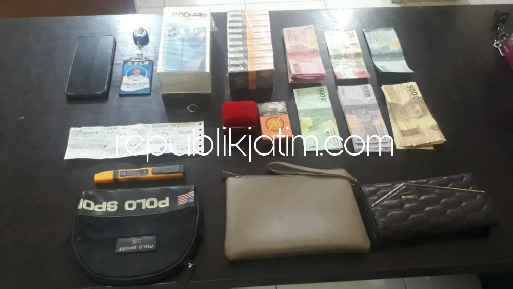 Tersangka diamankan polisi setelah melakukan pencurian di rumah Sriwati (30) warga Dusun Krajan, Desa Tumpakpelem, Kecamatan Sawoo, Kabupaten Ponorogo.