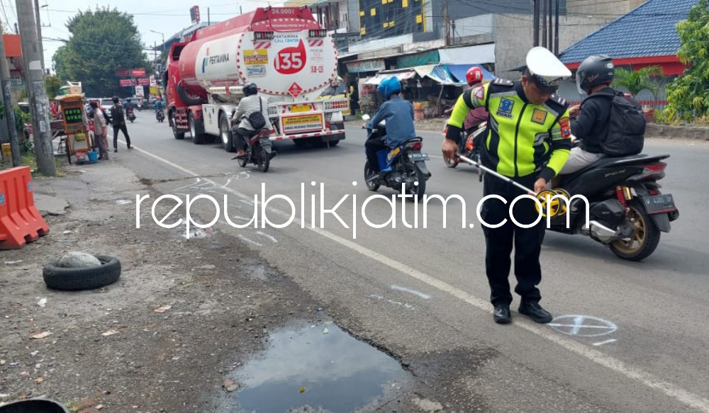 Sidoarjo (republikjatim.com) - Nasib apes dialami Mudik Supramono warga Desa Pepelegi, Kecamatan Waru, Sidoarjo. Pria berusia 52 tahun ini tewas mengenaskan di JL Letjend Sutoyo tepat di depan Hotel Nuansa, Desa Medaeng, Kecamatan Waru, Sidoarjo usai motornya bersenggolan dengan motor lain yang tidak diketahui identitasnya karena melarikan diri.