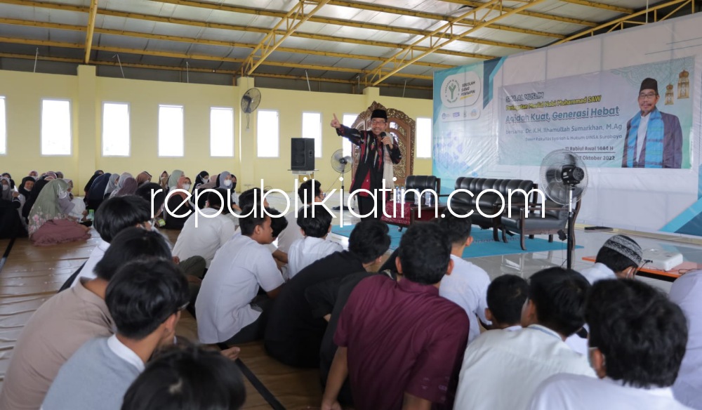 Sidoarjo (republikjatim.com) - SMA Al Muslim memperingati Maulid Nabi Muhammad SAW. Sekolah Sang pemimpin ini memperingati Maulid Nabi Muhammad SAW saat banyak generasi kehilangan identitas dalam menentukan keteladanan. Karena itu, pada bulan Rabiul Awal 1444 Hijriyah ini sebagai momentum bulan kelahiran Nabi Muhammad SAW, SMA Al Muslim menggelar pembinaan akhlak generasi khalifah fil ardl yang rahmatan lil álamin dengan tema menarik.