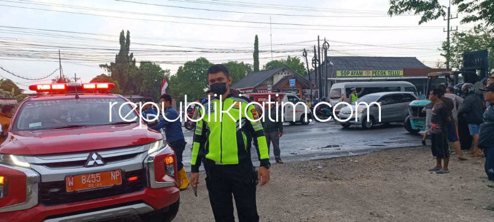 Sidoarjo (republikjatim.com) - Kecelakaan maut terjadi di JL Raya Surabaya - Sidoarjo, tepatnya di depan Perumahan TNI Al Gedangan, Sabtu (15/10/2022). Dalam kecelakaan di JL Raya Desa Tebel, Kecamatan Gedangan, Sidoarjo itu, menyebabkan seorang sopir truk asal Tuban tewas di lokasi kejadian.