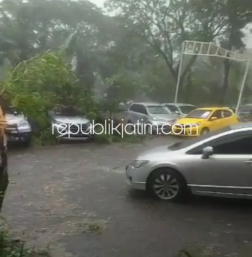 Sidoarjo (republikjatim.com) - Amukan angin puting beliung yang melanda sejumlah wilayah Sidoarjo menyebabkan puluhan pohon tumbang. Tidak hanya itu, amukan angin kencang juga menyebabkan sejumlah mobil tertimpa pohon tumbang di kawasan Kahuripan Nirvana Village (KNV) Sidoarjo.