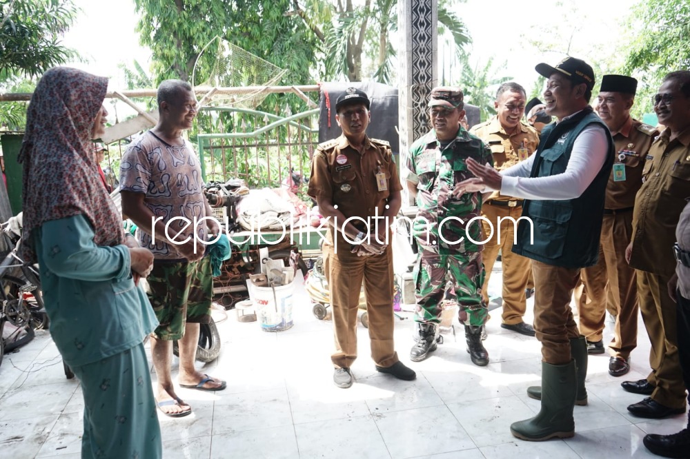 Kedatangan Subandi didampingi Camat Taman Mahmud, Kepala Dinas PUBM dan SDA Pemkab Sidoarjo Dwi Eko, serta pejabat Dinsos, BPBD dan Kepala Desa (Kades) Tanjungsari.