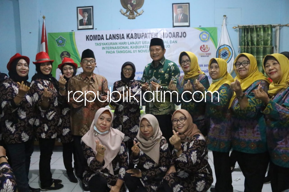Sidoarjo (republikjatim.com) - Komda Lansia Sidoarjo memperingati Hari Lanjut Usia Nasional (HLUN) ke 26 sekaligus Hari Lanjut Usia Internasional (HLUI) di Kantor Sekretariat Komda Lansia Sidoarjo, Selasa (01/11/2022). Peringatan itu dihadiri Wakil Bupati (Wabup) Sidoarjo, Subandi serta Kepala Dinas Kesehatan (Dinkes) Pemkab Sidoarjo, Dr Feny Apridawati dan Kepala Dinas Sosial (Dinsos) Pemkab Sidoarjo, M Misbahul Munir.