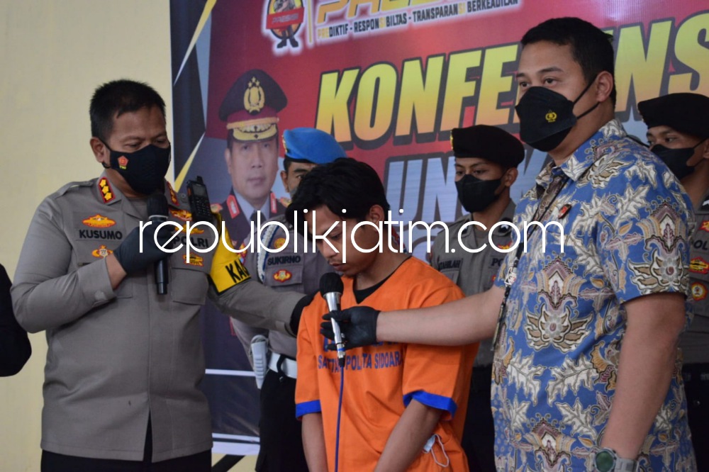 Kusumo menguraikan tersangka ditangkap hasil kerjasama Unit Resmob Satuan Reskrim Polresta Sidoarjo dan Polres Blora. Karena mendapat informasi keberadaan tersangka di depan Indomaret JL Raya Cepu Randublatung Kelurahan Ngraho, Kecamatan Randublatung, Kabupaten Blora, Jawa Tengah.