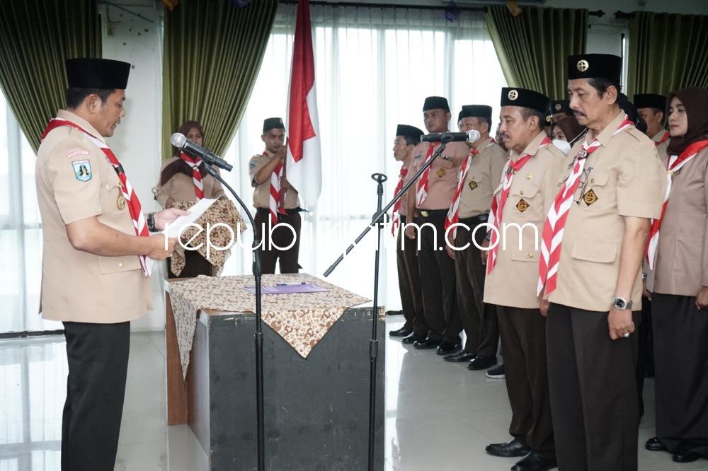 Sidoarjo (republikjatim.com) - Ketua Kwartir Cabang Gerakan Pramuka Kabupaten Sidoarjo, Subandi melantik Mabiran dan pengurus Kwartir Ranting (Kwarran) Gerakan Pramuka Kecamatan Sukodono, di Aula Kecamatan Sukodono, Sabtu (05/11/2022). Pelantikan Mabiran dan Kwarran Sukodono ini dihadiri para Kakak andalan Kwarcab Sidoarjo, Ka Mabiran Sukodono Kapolsek dan Danramil Sukodono, Kamabigus dan Pengurus Saka.