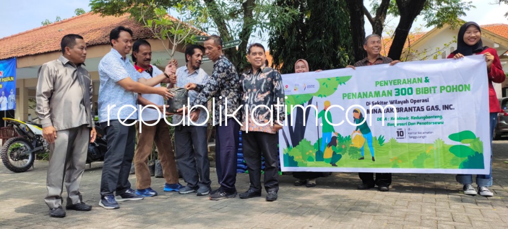 Sidoarjo (republikjatim.com) - SKK Migas Jabanusa menyerahkan dan menanam sebanyak 300 bibit pohon di sekitar wilayah operasi Minarak Brantas Gas, Inc. Diantaranya di wilayah Desa Kalidawir, Kedungbanteng, Banjarasri dan Desa Desa Penatarsewu. Secara simbolis penyerahan dan penanaman bibit pohon diberikan kepada Camat Tanggulangin, Sabino Mariano di halaman Kantor Kecamatan Tanggulangin, Kamis (10/11/2022).