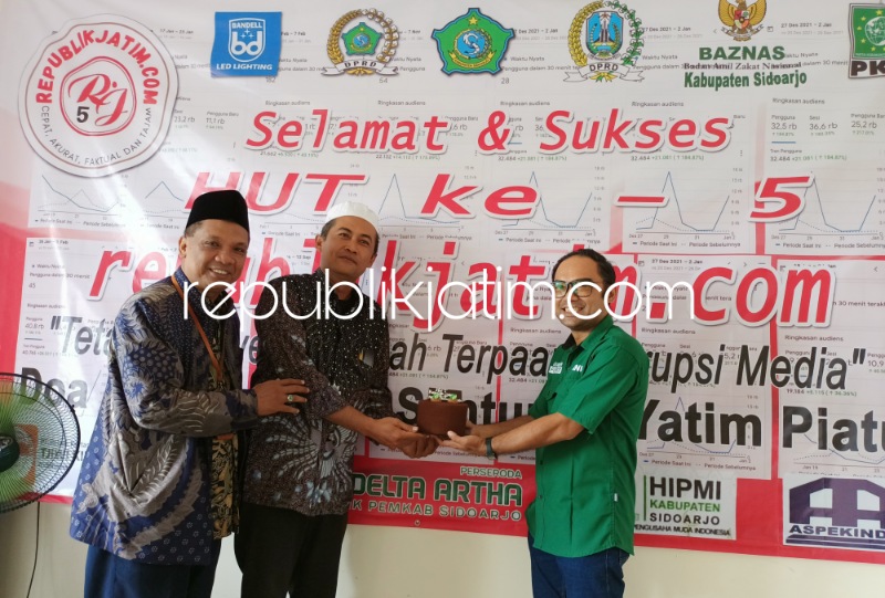 "Kami juga mendoakan republikjatim.com semakin sukses dan lancar dalam menyajikan beritanya. Termasuk berkah semua personil dan keluarganya. Serta semakin digemari pembaca. Karena menyajikan berita Aktual, Akurat Tajam dan Terpercaya. Semoga selalu mendapat ridlo Alloh SWT. Bagi anak yatim piatu yang hadir semoga diberi kesuksesan oleh Alloh SWT dan bisa bermanfaat bagi masyarakat," ungkap pejabat Kemenag Sidoarjo yang berusia 50 tahun ini.