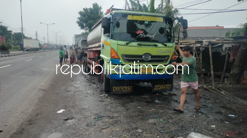 "Kronologis kecelakaan di depan PT HK ini bermula saat sepeda motor Honda Beat bernopol W 3703 GX datang dari arah Mojokerto menuju Surabaya. Tepat di TKP, diduga pengendara motor mengantuk hingga motor oleng ke kiri turun jalan raya. Akibatnya motor menabrak belakang Truk Tangki Tronton bernopol L 9632 UL yang berada di bahu jalan yang berada di cucian mobil itu. Karena truk sedang dicuci," ungkap mantan Kanit Lantas, Polsek Krian ini.