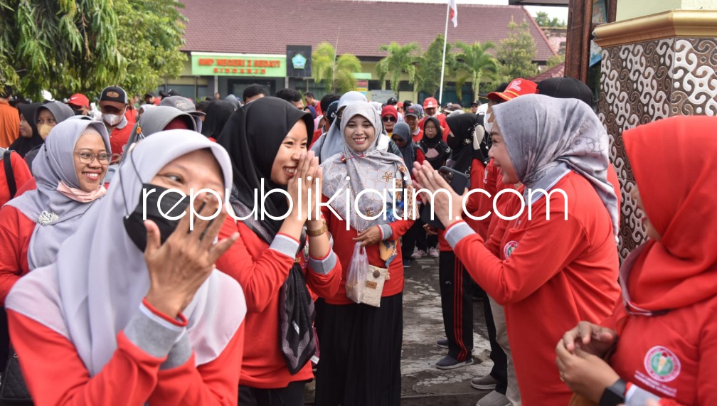 Sidoarjo (republikjatim.com) - Istri Wakil Bupati (Wabup) Sidoarjo, Ny Sriatun didaulat memberangkatkan peserta jalan sehat yang digelar PGRI Cabang Sedati di SMPN 2 Sedati, Sabtu (26/11/2022). Jalan sehat dan senam bersama dalam rangka HUT PGRI ke 77 dan Hari Guru Nasional (HGN) ini diikuti ratusan guru se Kecamatan Sedati.