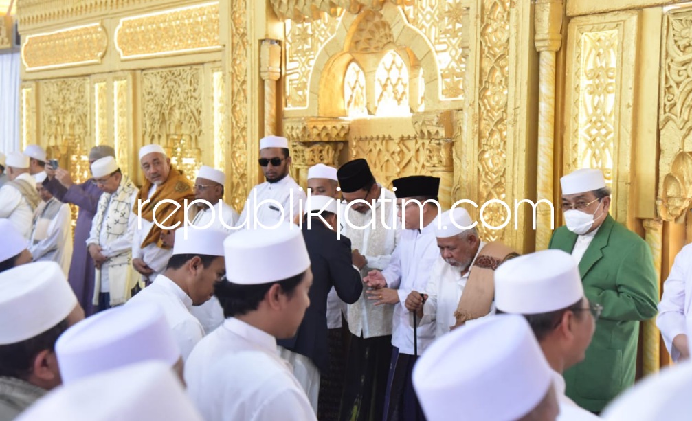 Sidoarjo (republikjatim.com) - Ribuan jamaah Al Khidmah dari berbagai daerah berbondong-bondong menuju Masjid Agung Sidoarjo, Minggu (11/12/2022). Kedatangan mereka untuk mengikuti majelis dzikir maulidurrasul Muhammad SAW sekaligus Haul Akbar Kabupaten Sidoarjo.