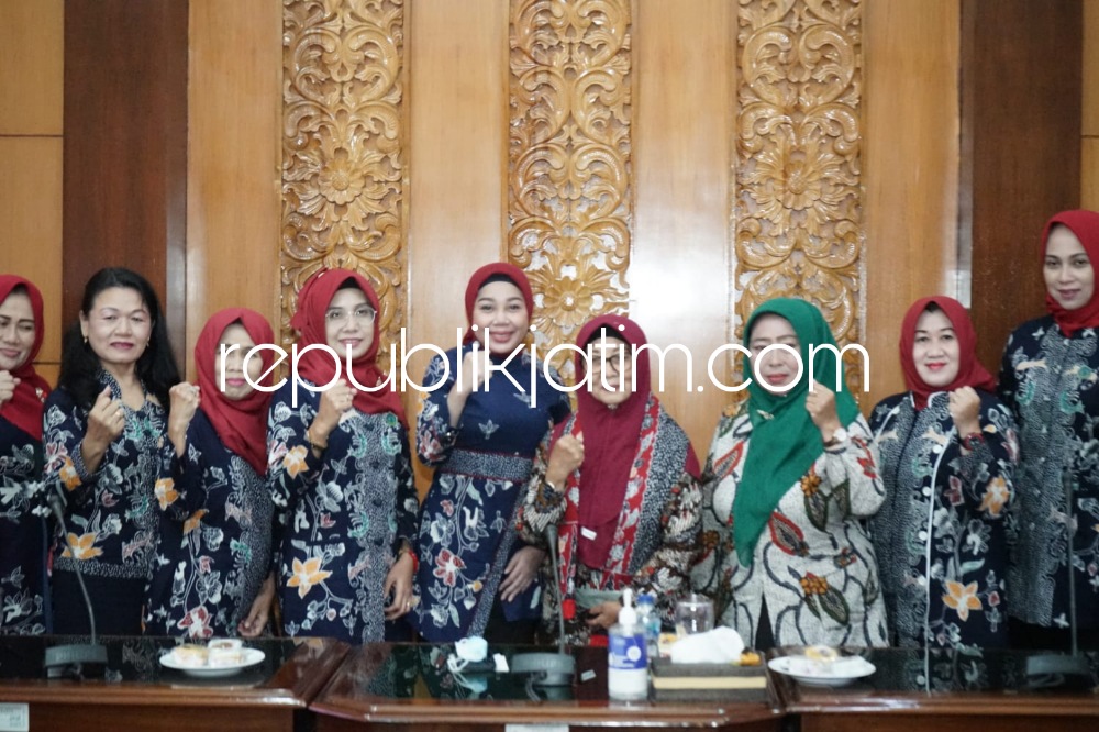 Sidoarjo (republikjatim.com) - Ketua Gabungan Organisasi Wanita (GOW) Kabupaten Sidoarjo, Ny Sriatun Subandi beserta anggota menyambut kunjungan kerja rombongan GOW Kabupaten Sumenep, Madura Senin (12/12/2022). Kunjungan kerja dalam rangka meningkatkan kualitas organisasi GOW Kabupaten Sumenep ini diterima di ruang Delta Wicaksana Setda Kabupaten Sidoarjo.