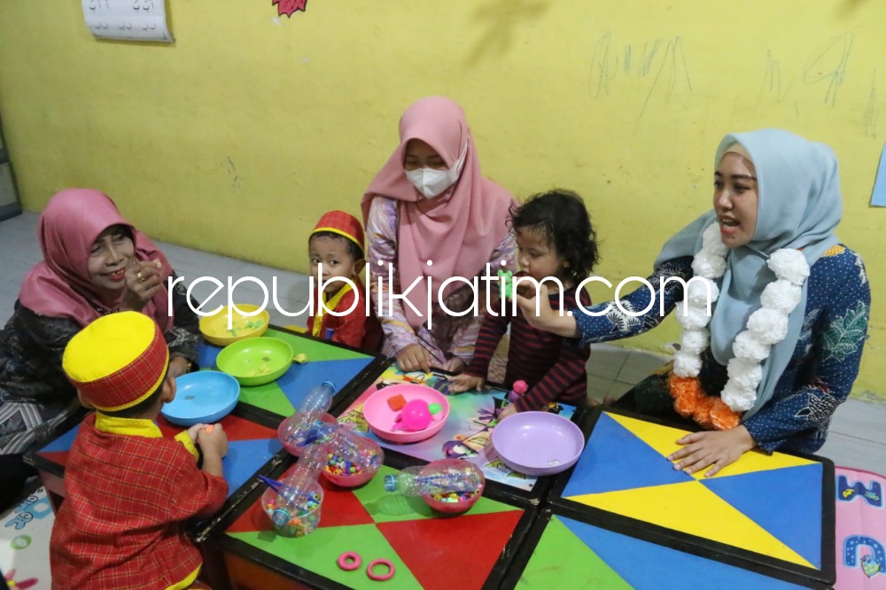 Sidoarjo (republikjatim.com) - Bunda PAUD Kabupaten Sidoarjo, Ny Sa’ada Ahmad Muhdlor yang akrab disapa Ning Sasha melaksanakan Monitoring dan Evaluasi (Monev) di beberapa Pendidikan Anak Usia Dini (PAUD) yang tersebar di Sidoarjo, Senin (19/12/2022). Diantaranya, di PAUD Sedap Malam Kelurahan Lemahputro, PAUD Villa Jasmine 3 di Desa Suko dan PAUD Siti Fatimah di Perum Wisma Sarinadi.