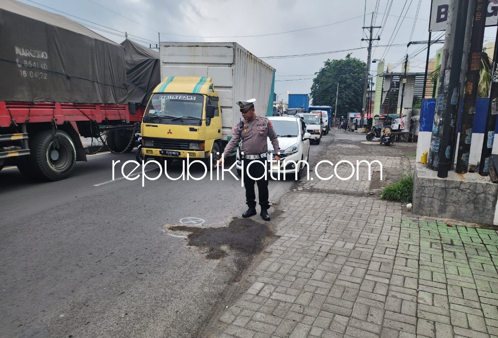 "Kronologisnya, semula sepeda motor Honda Beat bernopol W 2680 NCB berjalan dari timur (Surabaya) menuju ke barat (Mojokerto). Tepat di TKP, diduga tiba-tiba motor berjalan oleng ke kanan hingga terserempet roda kiri truk gandengan yang berjalan dari arah sama. Yakni dari arah timur menuju barat," ungkap mantan Kanit Lantas Polsek Krian ini.