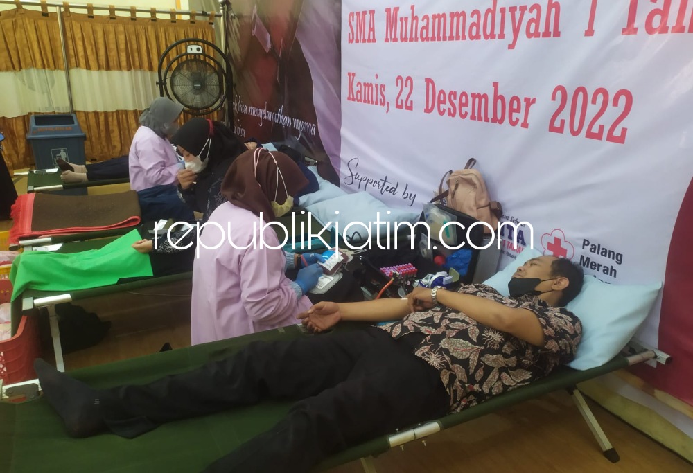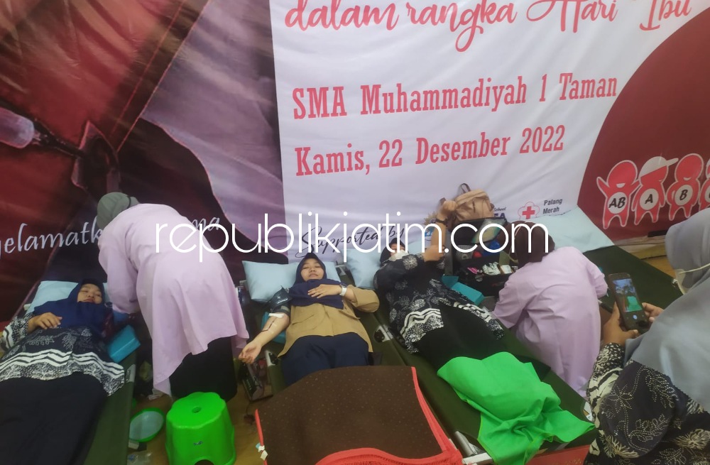 Sidoarjo (republikjatim.com) - SMA Muhammadiyah 1 Taman (Smamita) Sidoarjo menggelar acara donor darah. Acara donor darah hasil kerjasama dengan UPT PMI Cabang Sidoarjo ini diikuti puluhan peserta dari para siswa, guru dan warga sekitar sekolah yang memiliki bangunan bertingkat tinggi ini.
