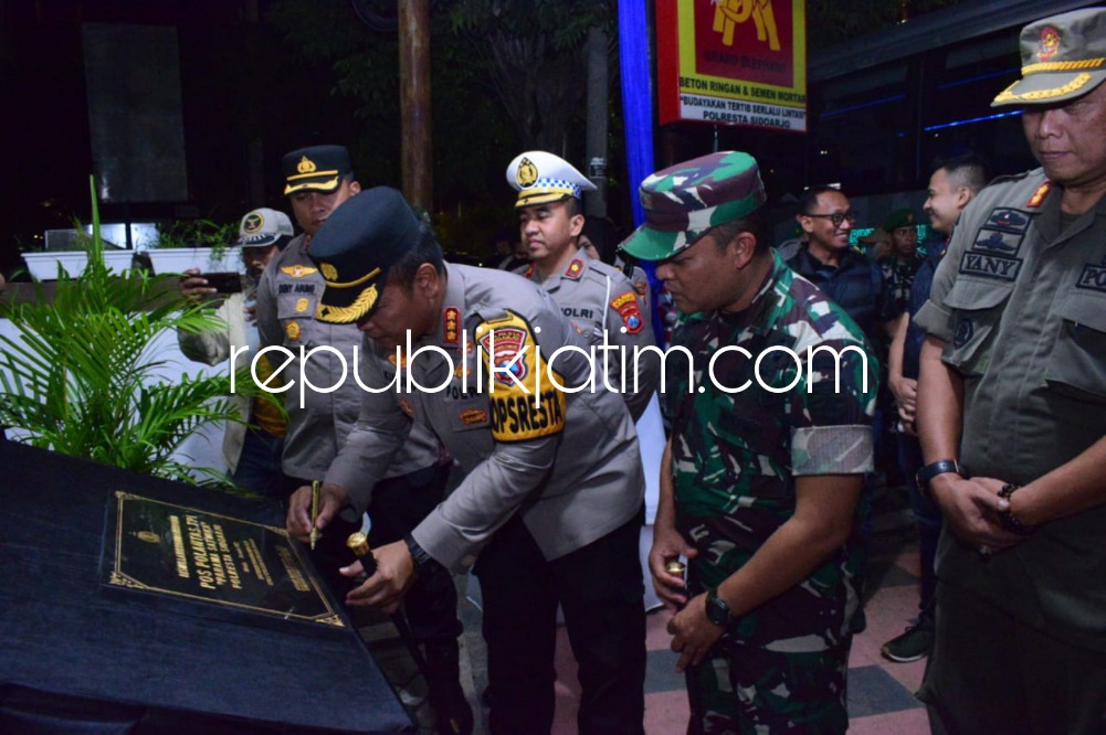 Sidoarjo (republikjatim.com) - Setelah melalui beberapa tahap renovasi, kini Pos Polisi Lalu Lintas (Polantas) di Taman Pinang Indah (TPI), Sidoarjo menjadi sebuah bangunan lebih layak untuk menunjang tugas kepolisian. Menandai Pos Polantas TPI mulai difungsikan, Kapolresta Sidoarjo bersama Dandim 0816 Sidoarjo dan Kasatpol PP Sidoarjo meresmikan pos lantas itu, Sabtu (31/12/2022) malam.