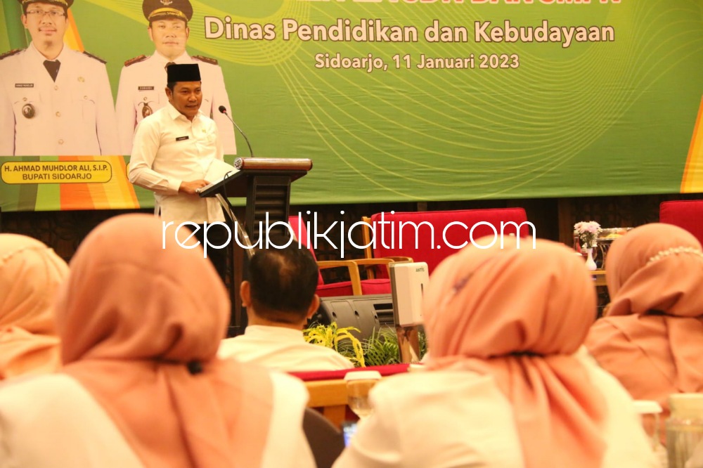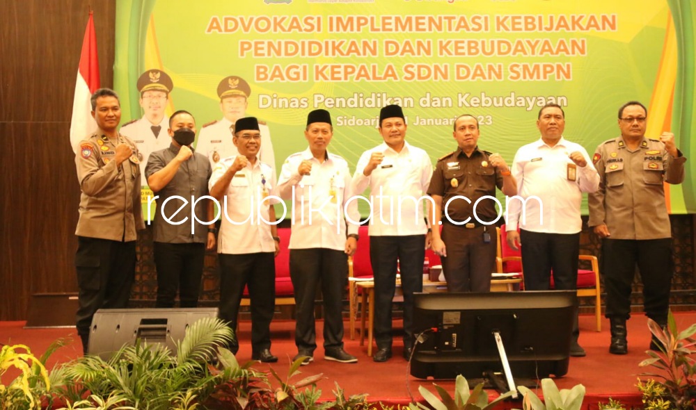 Sidoarjo (republikjatim.com) - Dinas Pendidikan dan Kebudayaan Pemkab Sidoarjo mengajak 333 Kepala Sekolah Dasar Negeri (SDM), 40 Kepala SMPN serta 2 Kepala Taman Kanak-Kanak Negeri se Sidoarjo untuk mengikuti Advokasi Implementasi Kebijakan Pendidikan dan Kebudayaan bagi kepala SDN dan SMPN di Fave Hotel Sidoarjo, Rabu (11/01/2023).
