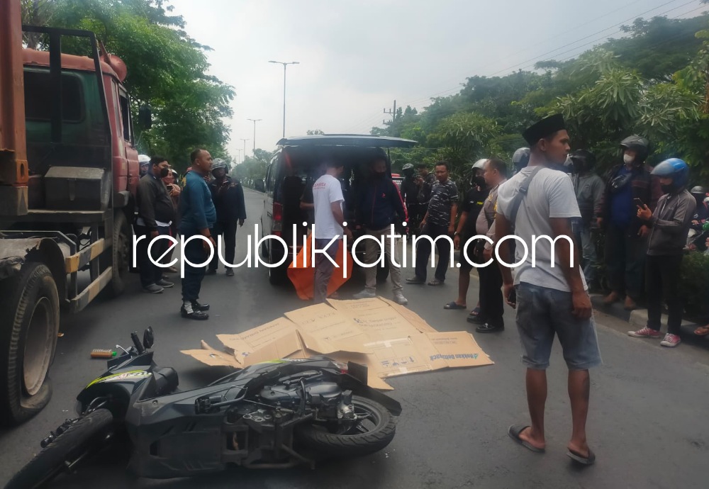 Sidoarjo (republikjatim.com) - Kecelakaan maut melibatkan sepeda motor dan truk Wing Box kembali terjadi di JL Raya Surabaya - Sidoarjo, tepatnya di depan sisi timur Mako Pasmar 1 Gedangan, Sidoarjo, Jumat (13/01/2023) sore. Dalam kecelakaan itu, menyebabkan seorang pengendara motor Honda Beat meninggal dunia di lokasi kejadian.