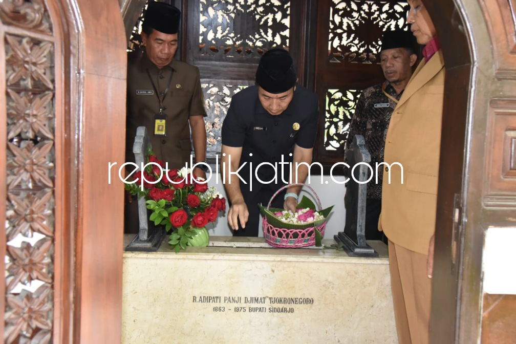Seperti tim satu yang dipimpin Pj Sekda yang mengawali ziarahnya ke Bupati R Ng Soeriadi Kertoprojo di Taman Makam Pahlawan (TMP) yang terletak di JL Taman Makam Pahlawan (TMP) Sidoarjo. Di TMP sekaligus dilakukan apel kehormatan kepada para pahlawan yang dimakamkan di tempat itu. Dari makam Bupati R Ng Soeriadi Kertoprojo yang menjabat tahun 1950 - 1958 itu, tim satu menuju ke makam Bupati RT TJokronegoro I yang berada di komplek Makam Asri Hing Pendhem belakang Masjid Agung Sidoarjo. Bupati RT TJokronegoro I memerintah Sidoarjo di era kolonial Belanda, mulai tahun 1859 - 1863. Disamping makam Tjokronegoro I juga dimakamkan Bupati Sidoarjo ke 3 yang bernama RT Soemodirejo yang menjabat hanya 3 bulan karena wafat tahun 1883.