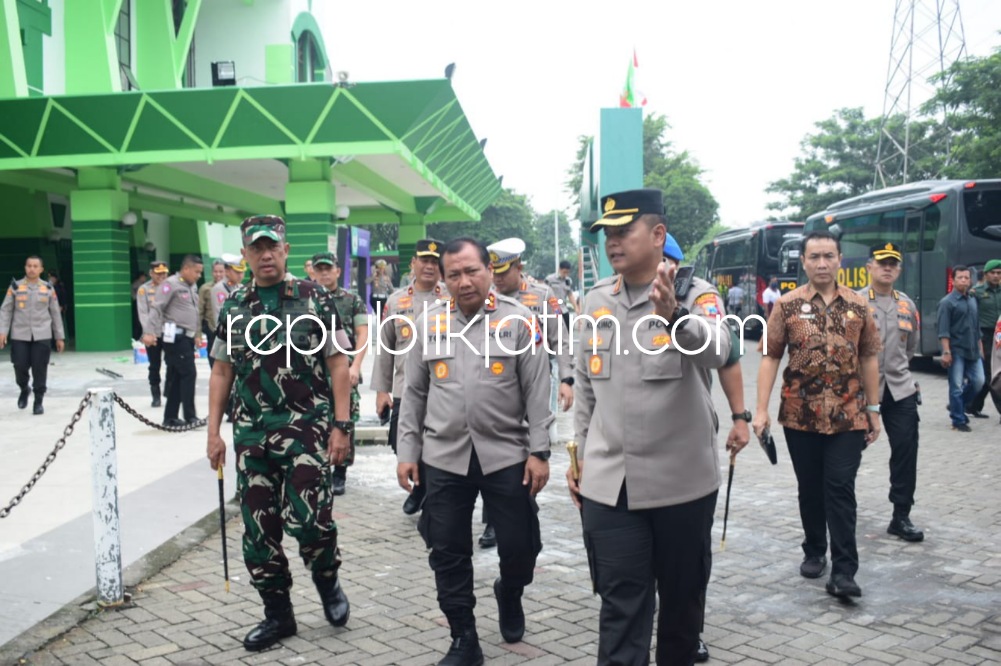 Sidoarjo (republikjatim.com) - Kapolda Jawa Timur Irjen Pol Toni Harmanto, Waka Polda Jawa Timur Brigjen Pol Slamet Hadi Supraptoyo bersama Komandan Korem 084/Bhaskara Jaya Brigjen TNI Terry Tresna Purnama, serta pejabat utama (PJU) Polda Jatim mengecek kondisi GOR Delta Sidoarjo, Kamis (02/02/2023). Pengecekan ini lantaran GOR Delta Sidoarjo bakal dijadikan lokasi Puncak Resepsi Harlah satu abad NU pada 7 Februari 2023 mendatang.