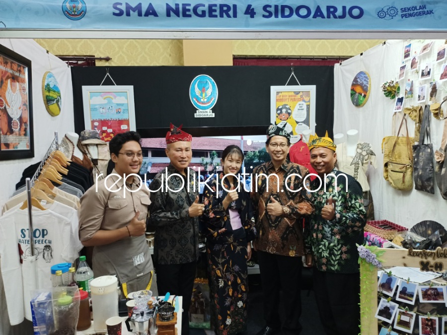 Sejumlah karya siswa yang dipamerkan dalam stan SMAN 4 Sidoarjo yang sempat dikunjungi Kepala Dinas Pendidikan dan Kebudayaan Provinsi Jatim, Dr Ir Wahid Wahyudi itu diantaranya berupa produk sandal khas siswa SMAN 4 Sidoarjo. Selain itu, terdapat berbagai desain kaos anti Bullying, batik ekoprint berbahan daun bunga Asoka serta kopi racikan barista Muhammad Farel Agung yang tak lain siswa kelas 12 IPA 2 SMAN 4 Sidoarjo.